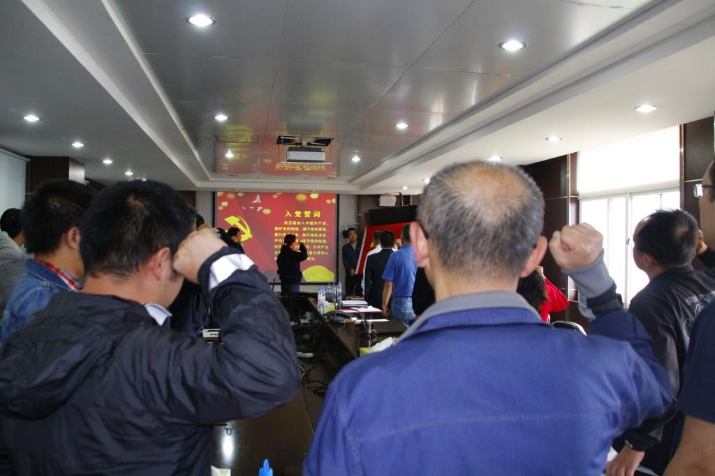 在黨課開始前,錫材公司6名新黨員面對(duì)黨旗莊嚴(yán)宣誓,與會(huì)的40多名老黨員一起重溫入黨誓詞,進(jìn)一步增強(qiáng)黨員意識(shí),牢記黨員使命。